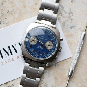 1970s Zodiac Super Sea Wolf U.S. Navy SEALs Tested See Watch The original 1970s Zodiac Super Sea Wolf. Used by US Navy SEALs. In-house Zodiac movement. Rated to 2500 feet. Beautiful star dust patina dial. Shop All In Stock Stunning Seastar powered by Lemania 1970s Tissot Seastar T.12 Lemania See Watch Check out this incredible restoration! A stunning 1970s Tissot Seastar T.12 triple-register chronograph. 42mm. Powered by a Lemania 1281. Shop All In Stock
