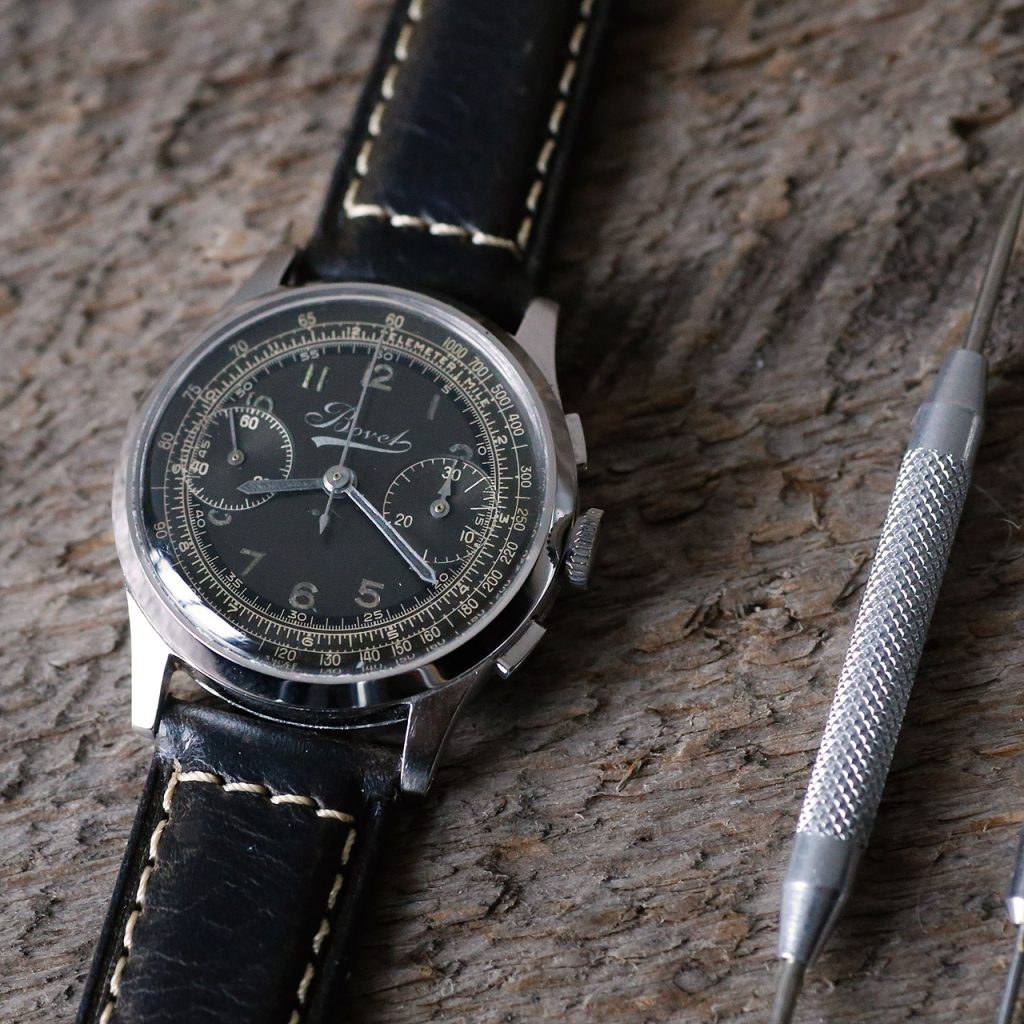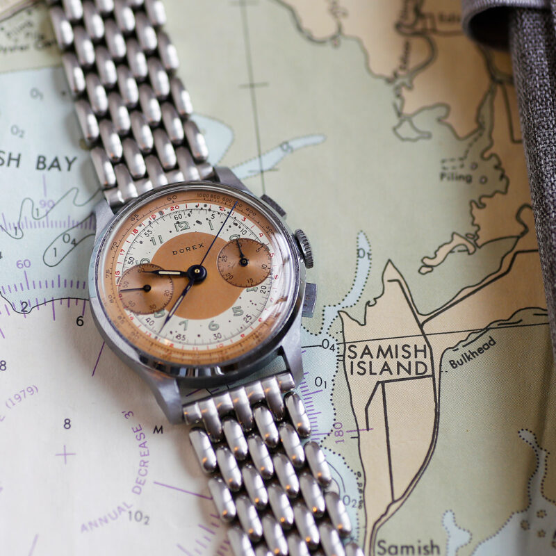 See Watch We present to you this stunning restored example of a 1940s Delbana (Dorex/Delba) Chornograph with a 2 tone copper sector dial. Shop All In Stock