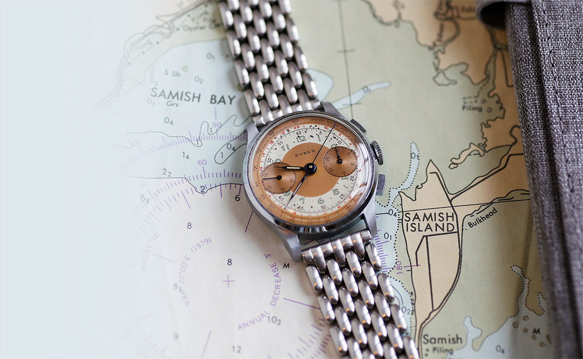 Copper Sector See Watch We present to you this stunning restored example of a 1940s Delbana (Dorex/Delba) Chornograph with a 2 tone copper sector dial. Shop All In Stock For A Special Lady