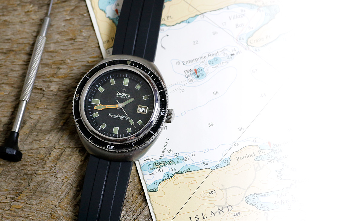 This 1963 Audemars Piguet Ultra-Thin in 18k solid gold held the record for the thinnest watch for over a decade. Impossibly thin, incredibly stylish. Fully restored and ready for daily wear. Store Overview In Stock 1970s Zodiac Super Sea Wolf U.S. Navy SEALs Tested See Watch The original 1970s Zodiac Super Sea Wolf. Used by US Navy SEALs. In-house Zodiac movement. Rated to 2500 feet. Beautiful star dust patina dial. Shop All In Stock Stunning Seastar powered by Lemania 1970s Tissot Seastar T.12 Lemania See Watch Check out this incredible restoration! A stunning 1970s Tissot Seastar T.12 triple-register chronograph. 42mm. Powered by a Lemania 1281. Shop All In Stock