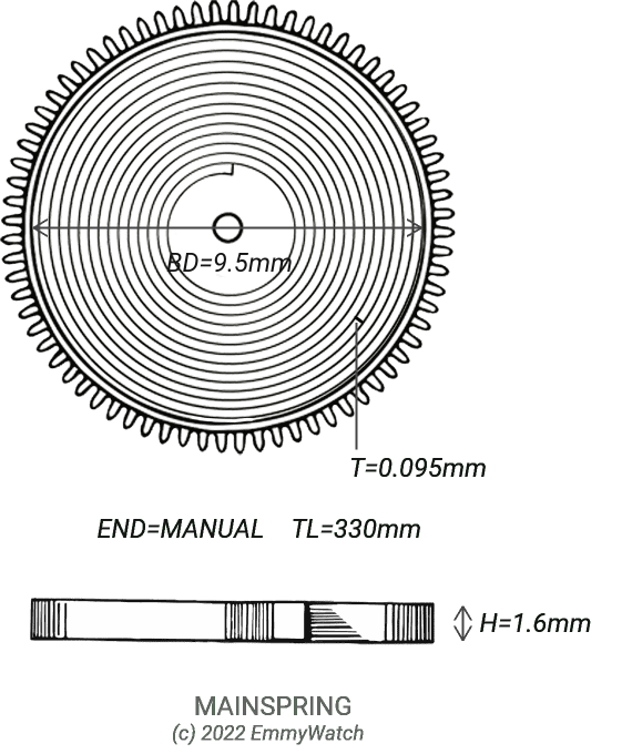 This mainspring is similar to the mainspring used by the following movements. A similar mainspring differs slightly in one or more dimensions but may possibly still work as a replacement. When values differ the exact value is shown brackets for reference: