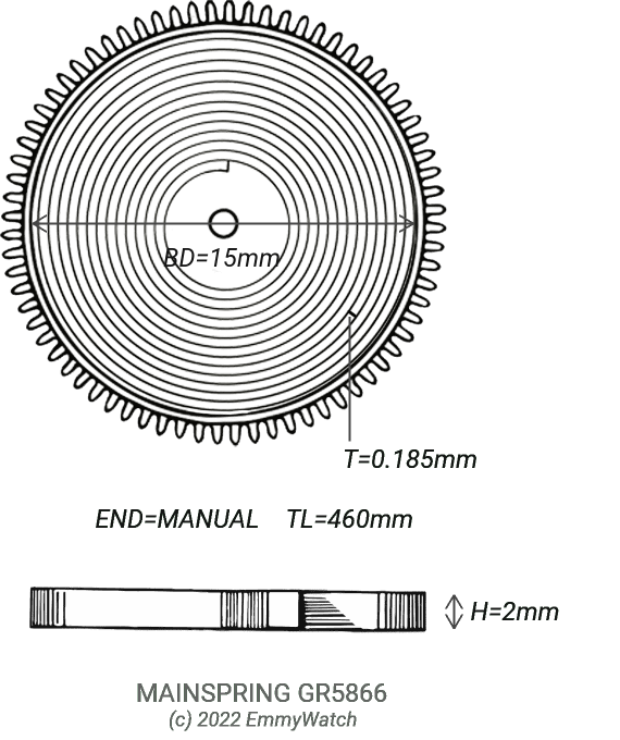 This mainspring is similar to the mainspring used by the following movements. A similar mainspring differs slightly in one or more dimensions but may possibly still work as a replacement. When values differ the exact value is shown brackets for reference: