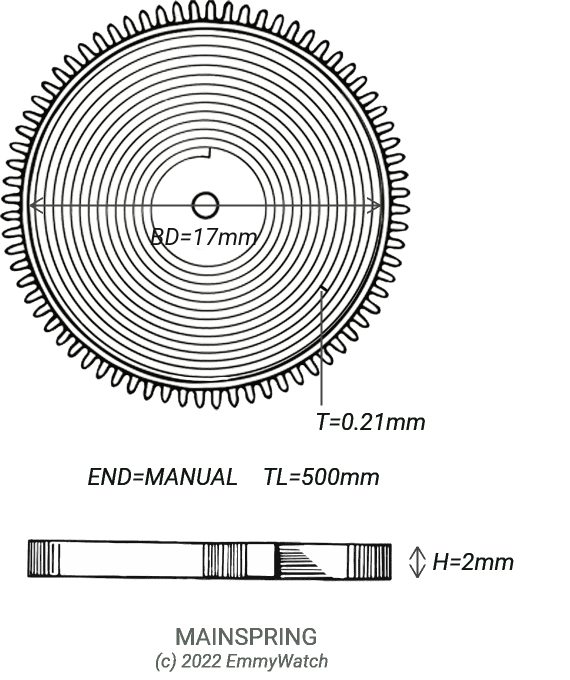This mainspring is similar to the mainspring used by the following movements. A similar mainspring differs slightly in one or more dimensions but may possibly still work as a replacement. When values differ the exact value is shown brackets for reference: