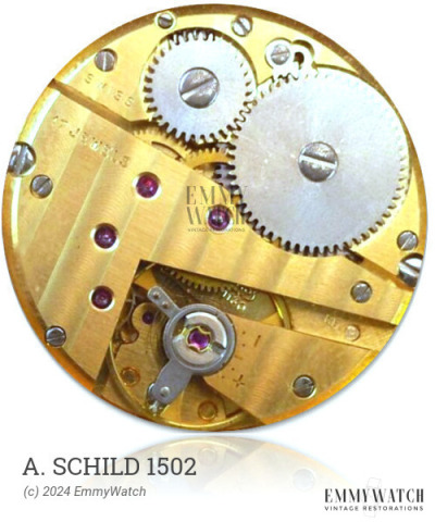 The A. Schild 1502 is a manual wind mechanical watch movement that features a sub-second function. It was introduced in approximately 1935. Details regarding the specific differences between the Peseux 110, 111, 112, 113, and 114 are currently unavailable.