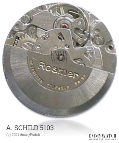 The A. Schild 5103 watch movement features an indirectly driven minute hand, allowing for a larger balance and low-profile design. This automatic movement also includes sweep seconds and a calendar function, allowing the date to be set by adjusting the time between 20:20 and 24 hours.
