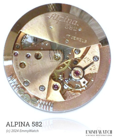 The Alpina 582 watch movement was produced between the years 1948 and 1955. It is similar to the 138SS movement, with no known differences between the two. The 139 movement features automatic (bumper) winding and sweep second functionality.