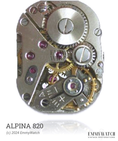 The Alpina 820 is a manual wind watch movement that features sub second functionality. Produced around the 1950s, it belongs to a family of movements including the 900, 902, 903, 927-929, 938, and 968. While there are differences among these movements, the exact nature of these differences is not currently known. It is speculated that these variances may be related to varying bridge designs.