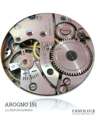 The Arogno 151 watch movement belongs to a series of movements with different bridge shapes, including the 810 through 815, 818, 822, 823, 897, and 899. It is a manual wind movement with a sub second function.