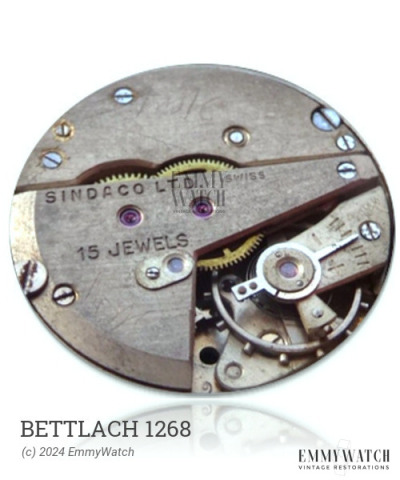The Bettlach 1268 is a mechanical watch movement, also known as the Wehrmachtswerk or the Germany Military Movement. It is closely related to the AS 1130 movement, and its differences with other movements such as 1142, 1149, 1243, 1286, 1295, 1304, 1339, 1383, 1387, 1392, 1399, 1401, 1420, 1487, 1502, 1522, 1540, 1542, 1548, 1573, 1597, 1667, and 1685 are not known. The Bettlach 1268 movement comes in two calibres with a size of 13.5''' (1337, 1511) and two calibres with a size of 14''' (1486, 1543). It features an indirect sweep second and is manually wound. It was produced for a short period of time around 1955 before being replaced by the AS 1188 movement with a direct sweep second.