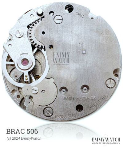 The Brac 506 is a mechanical watch movement that was commonly used in manual wind watches with a period of usage around 1936. It has the option for a digital display, showcasing minutes and jumping hours. However, there is limited information available regarding the specific differences between the A. Schild 624 and 804 movements.