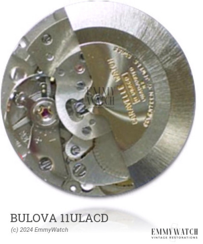The Bulova 11ULACD watch movement features an indirectly driven minute, allowing for a large balance and low profile. This movement is automatic and includes a sweep second hand. It is capable of displaying the date, which can be set by changing the 20:20-24h. The Bulova 11ULACD movement was introduced in 1893 and is still used today.