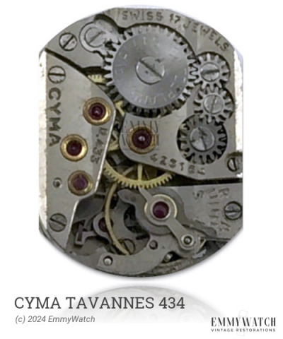 The Cyma Tavannes 434 is a manual wind watch movement that was used in watches during the period of approximately 1950.