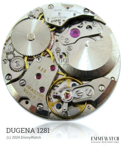 The Dugena 1281 is a mechanical watch movement primarily utilized between 1962 and 1967. It features an automatic winding mechanism and incorporates a sweep second function.