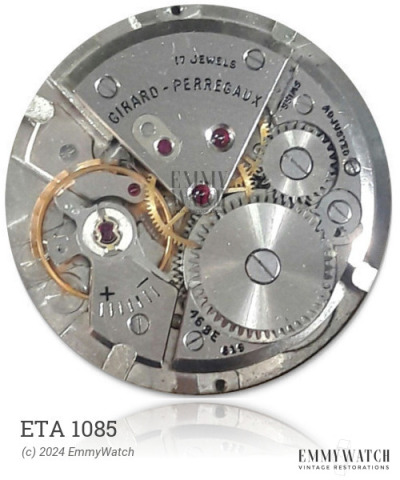The ETA 1085 is a mechanical watch movement with manual winding and a sweep second function. It is designed for use around the period of 1972. For more detailed technical information, refer to the Mido 1147OC.