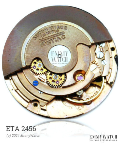 The ETA 2456 watch movement is equipped with a ball-bearing rotor and features an excenter self-winding mechanism that consists of just one gear stage. The module of this movement is based on a base movement. It is often or always referred to as the Lorsa 237B. The movement possesses the functions of automatic winding and sub-second display. It was predominantly utilized during the approximate period of 1960.