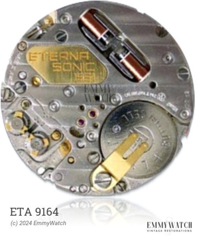 The ETA 9164 watch movement, produced from 1962 to 1969, was the first German electrical wrist-watch calibre. Featuring a electromechanically controlled balance motor, the movement was not self-starting, necessitating the lock of the balance in a position when the crown was pulled, ensuring reliable starting when pressed. Early samples lacked a regulator pointer. The M67 also offered a back crown, jumping sweep second, and an electrical and mechanical hack feature.