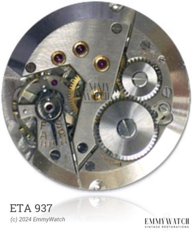 The ETA 937 is a manual wind watch movement that features a Breguet hairspring and a regulator with a catch device for the hairspring. It is available in both sweep seconds and non-sweep seconds variations.