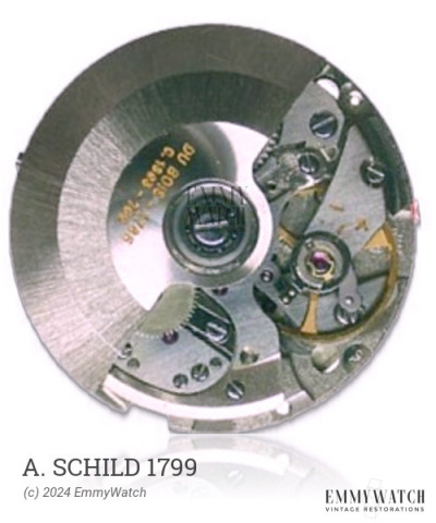 The Eterna 1480K watch movement, developed in 1949, belongs to the family 28.10 and 30.10. Over the period of 1943-1955, more than 1,300,000 units were produced. In 1949, it was renamed to 28.10T1 RA SC PC to 351. This movement features automatic (bumper) winding, a sweep second hand, and the option for a power reserve display.