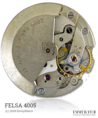 The Felsa 4005 is a notable watch movement that was introduced around 1958. It stands out for its winding gear made from beryllium bronze and its distinction as the smallest diameter for a serial automatic movement with a sweep second function.