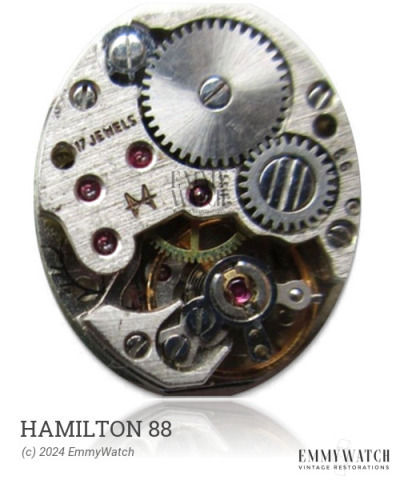 The Hamilton 88 is a mechanical watch movement that was used primarily around the 1950s. It features manual winding and a sub-second function. The specific differences between the Hamilton 88 and the Cortebert 571 are not known.