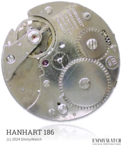 The Hanhart 186 is a manual wind watch movement that was introduced in the 1970s. It is designed to be used in mechanical watches. The movement does not include any additional functions beyond its manual winding mechanism.