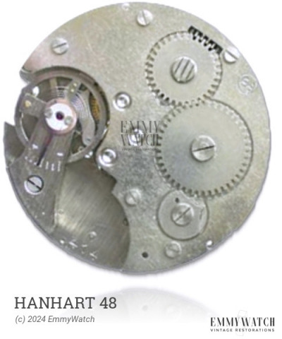 The Hanhart 48 watch movement was a base calibre that was passed from Election to Marvin around 1960, and eventually to Longines in the late 60s. It is worth noting that many parts of the movement are interchangeable among these three manufacturers. The movement is primarily characterized by its manual winding mechanism, sub-second function, and it was primarily used during the period of approximately 1950.