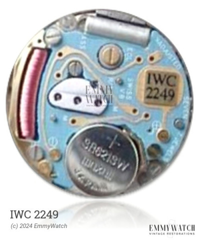 The IWC 2249 is a longlife version of a watch movement introduced in 1985. It is powered by a quartz controlled stepper motor and features a quickset date function. The movement includes a sweep seconds hand, and it operates on quartz technology. Additionally, it incorporates a calendar with a quickset feature. The IWC 2249 movement has been in use since 1985.