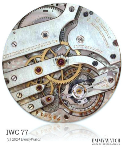 The IWC 77 is a manual wind, back-winder watch movement that was used from 1963 onwards. It features a straight lever escapement and is equipped with Incabloc Shock Protection. The movement also includes the function of backwinding.