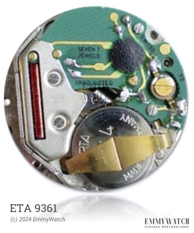 The Jaeger Lecoultre 354 is a quartz controlled stepper motor watch movement that features a sweep second hand, quickset date function, and was commonly used during the period around 1995.