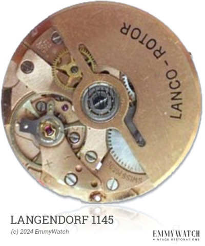 The Langendorf 1145 watch movement is an automatic mechanical movement with a sweep second function. It belongs to a set of movements including the 700, 700N, 701, 701N, 703, 703N, 706, 706N, and 709, although the differences between them are unknown. The Langendorf 1145 was commonly used during the period around 1950.