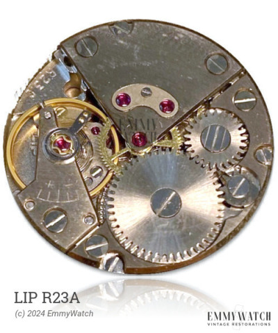 The Lip R23A watch movement is a manual wind movement with a sweep second function. It was used during the period of 1950-1952.