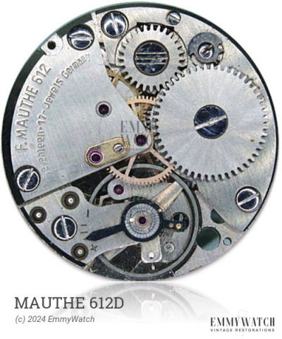 The Mauthe 612D watch movement is a hunter calibre movement with stem wind and set functionality. It also features sub-second display. The movement offers accurate timekeeping and is designed to be durable and reliable. The Mauthe 612D movement is a mechanical movement with high precision and is constructed with quality materials. It is suitable for use in various watch designs.