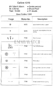 | Block # (Top/Bottom) | Cap Jewel # (Top/Bottom) | Spring # (Top/Bottom) |