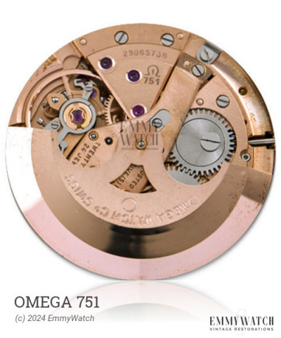 The Omega 751 watch movement, utilized from 1959 to 1956, incorporates several notable features. These include a free Breguet hairspring with a protection bar and a balance with regulating screws. The movement offers various functions, including automatic winding, sweep seconds, a date display that can be set by changing the 21-24 hour indicators, and a 24-hour display.