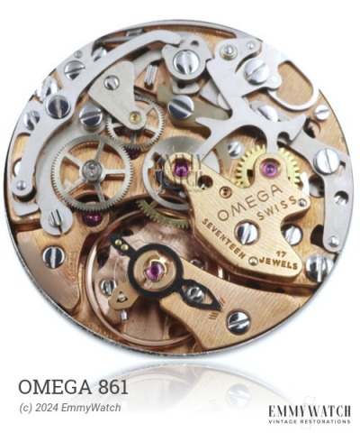The Omega 861 is a manual wind mechanical watch movement that features sub second function and Incabloc Shock Protection. It was primarily used in watches manufactured around 1964.