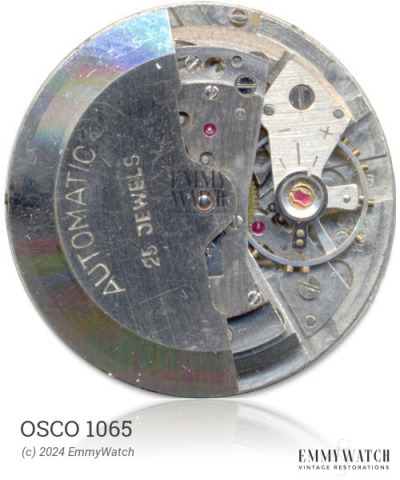 The Osco 1065 is a mechanical watch movement that incorporates a winding gear made from beryllium bronze. It is notable for being the smallest diameter movement for a serial automatic with a sweep second function. Developed around 1958, the movement features an automatic winding system and includes sweep seconds as one of its functions.