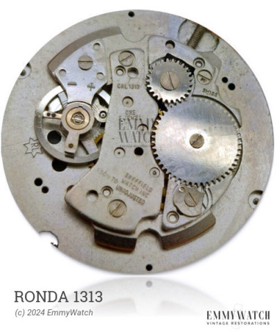 The Ronda 1313 watch movement, also known as the Omega R17.8 from 1939, is a manual wind movement that features a sub second function. It was used during the period of 1949 and onwards.