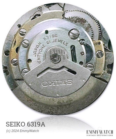 The Seiko 6319A watch movement is a mechanical movement that was used in watches from 1948 to 1955. It is an automatic (bumper) movement, featuring sub second and sweep seconds functions.