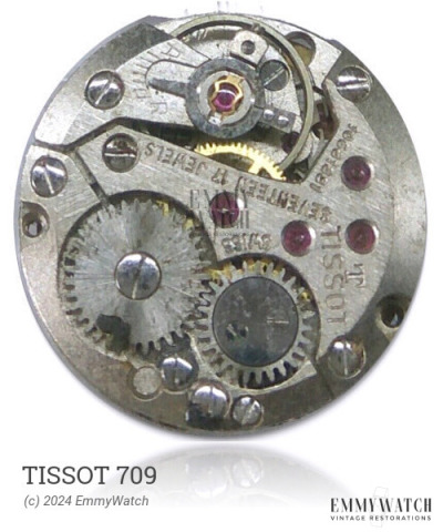 The Tissot 709 is a manual wind mechanical watch movement that features a sub second function. Primarily used in pocket watches, it was produced around the 1970s period.