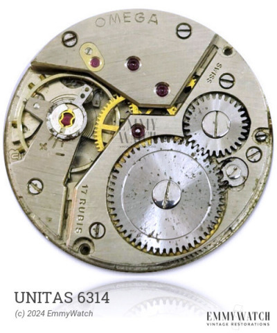 The Unitas 6314 is a watch movement that was produced from 1899 to 1903, with a total of 31,000 units manufactured during that period. It features an open face calibre, known as the model 5. The movement is equipped with a bimetallic screw balance and a Breguet hairspring, enhancing its precision and accuracy. Notably, the ratchet is positioned under the base plate, and it incorporates a negative stem mechanism with a rocker bar. The Unitas 6314 also includes functions such as stem winding, which can be switched by either the crown or lever, and a sub-second display.