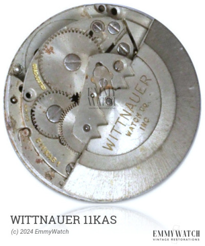 The Wittnauer 11KAS watch movement, introduced in 1969, is the first automatic chronograph movement. It features a 60-second, 30-minute, and 12-hour chronograph function, along with a sub-second display. The movement also includes a quickset date function. This pillar wheel movement has been used since its introduction in 1969.