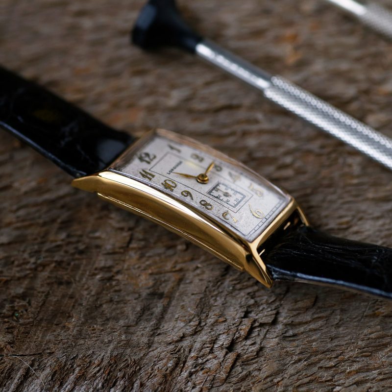 1948 Longines Tank 9L 10k Gold. Beautiful long and slender design from the late 1940s.