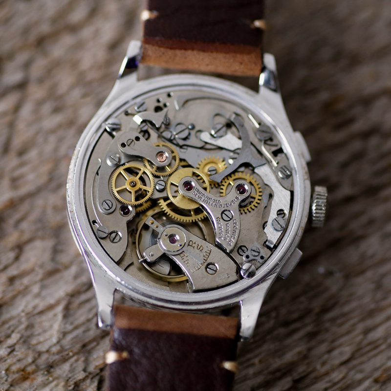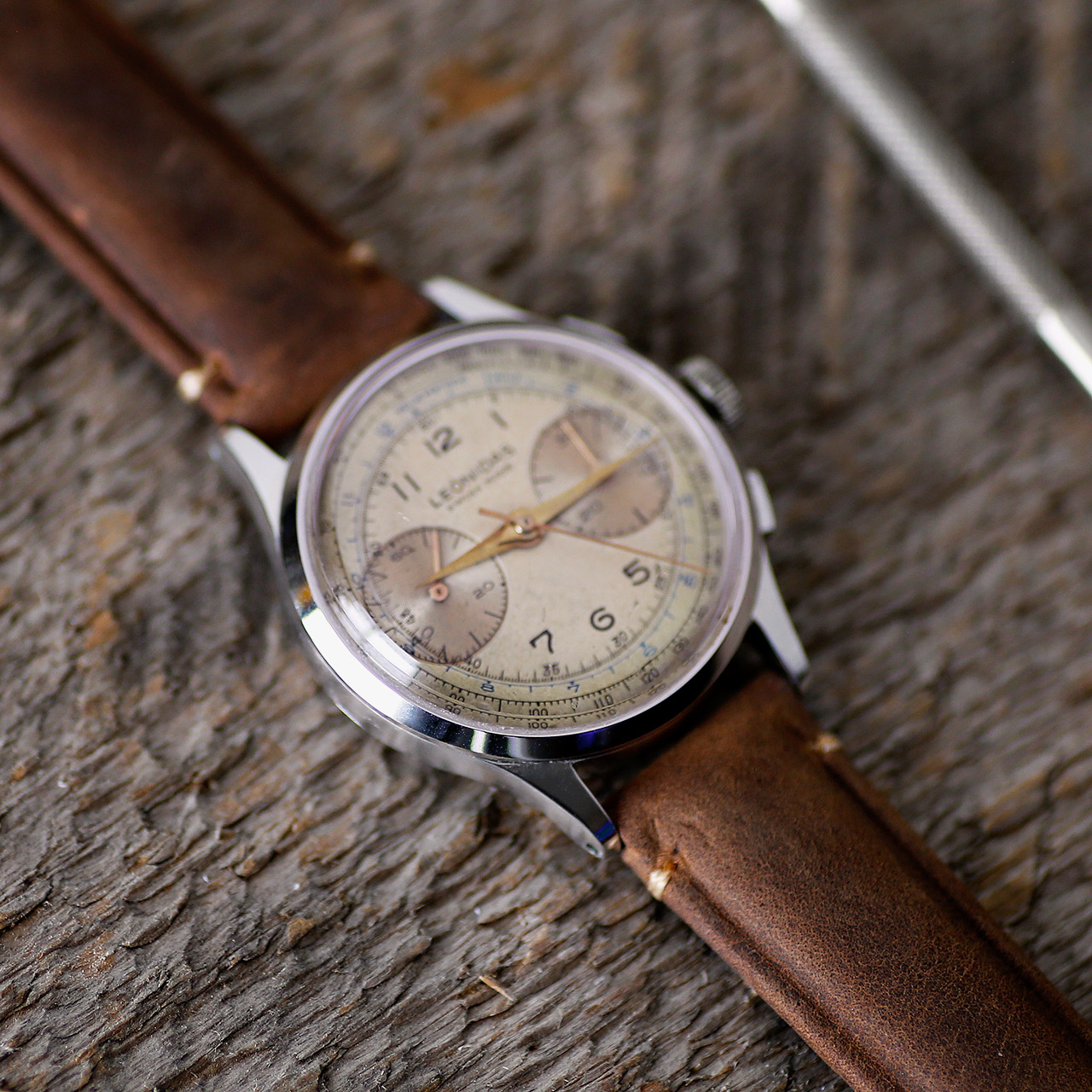 As with all our restored pieces we sell, this 1940s Leonidas Big Eyes Dual Register Chronograph comes with our zero-headache warranty.