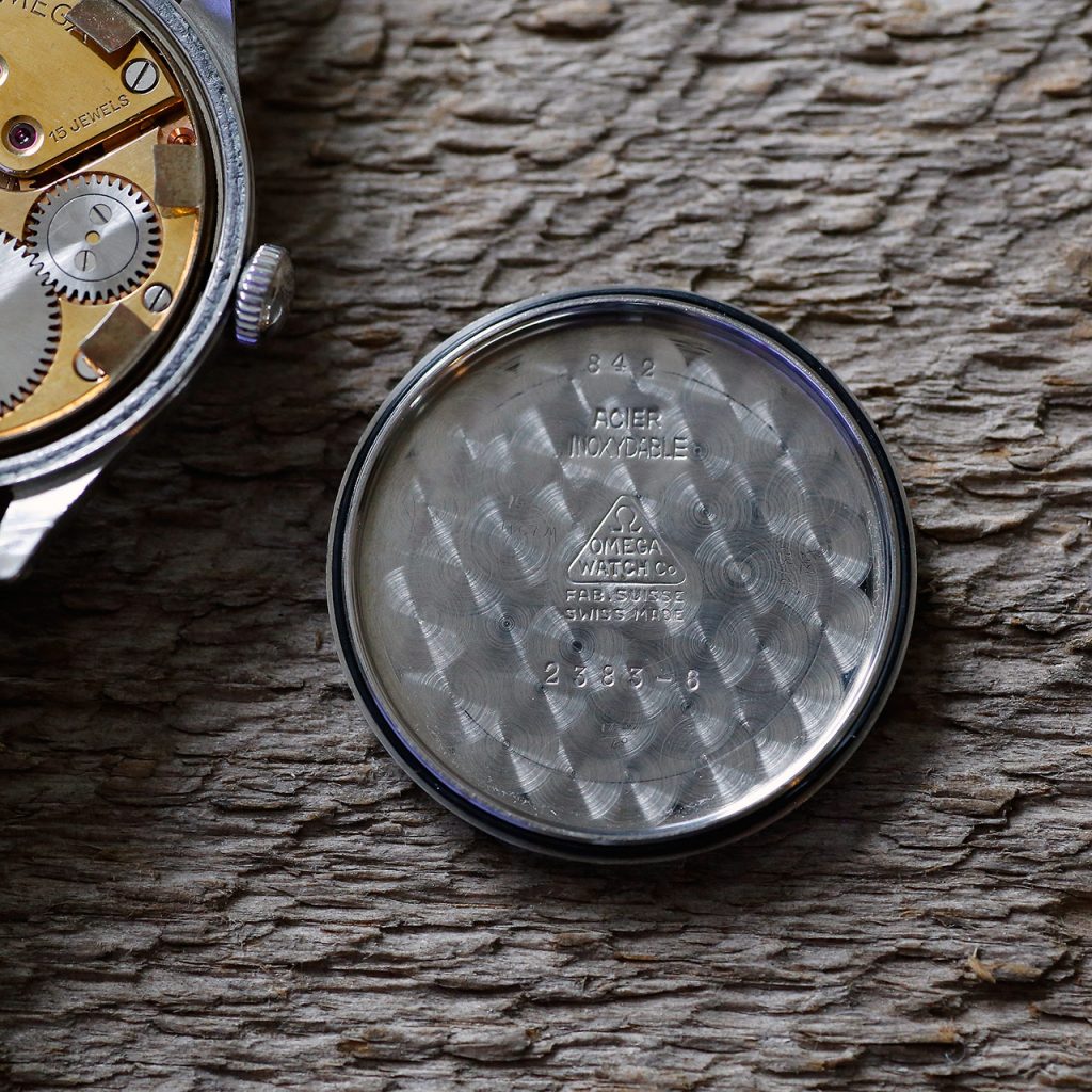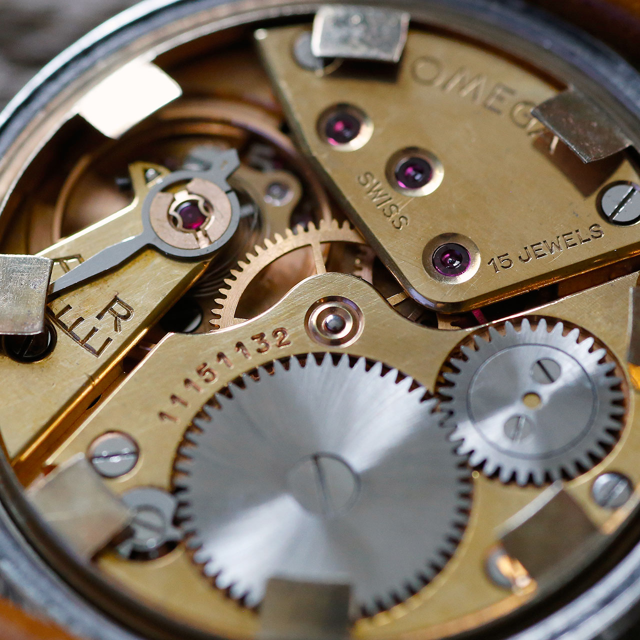 A note regarding the dial. In my opinion the dial is probably not original, but I also strongly believe it has not been refinished. The quality of the dial finishing is much too good for even the best dial refinishers today and includes the use of metallic inlays and very accurate typeface, as well, the dial back side is not hand-signed, and in my experience, dial refinishers will almost always hand-sign the back of the dial. My professional assessment is that the dial was most likely replaced at some point with an original/NOS dial from Omega.