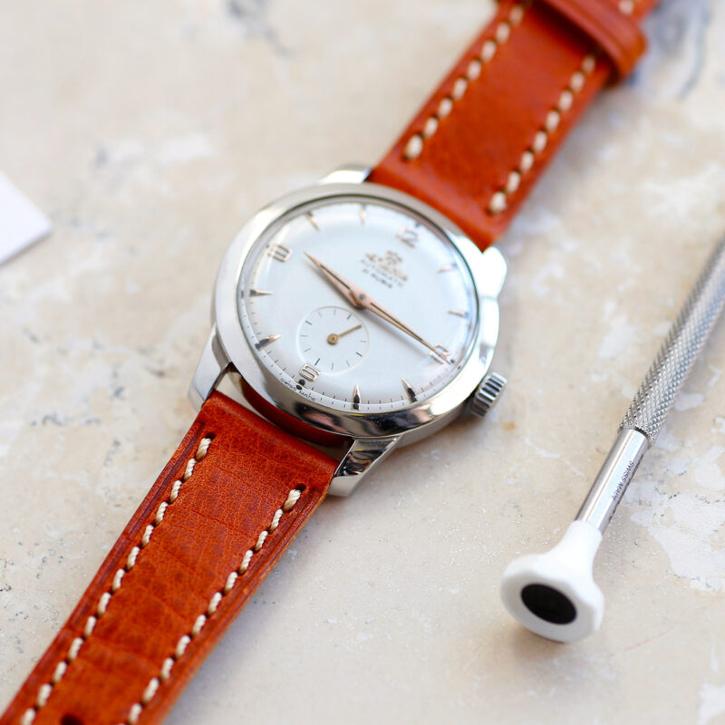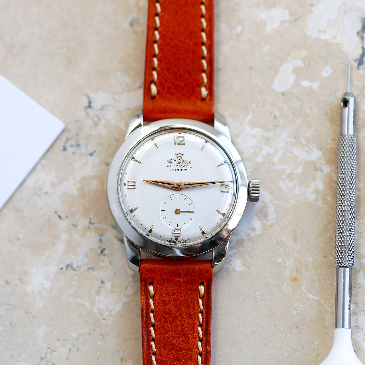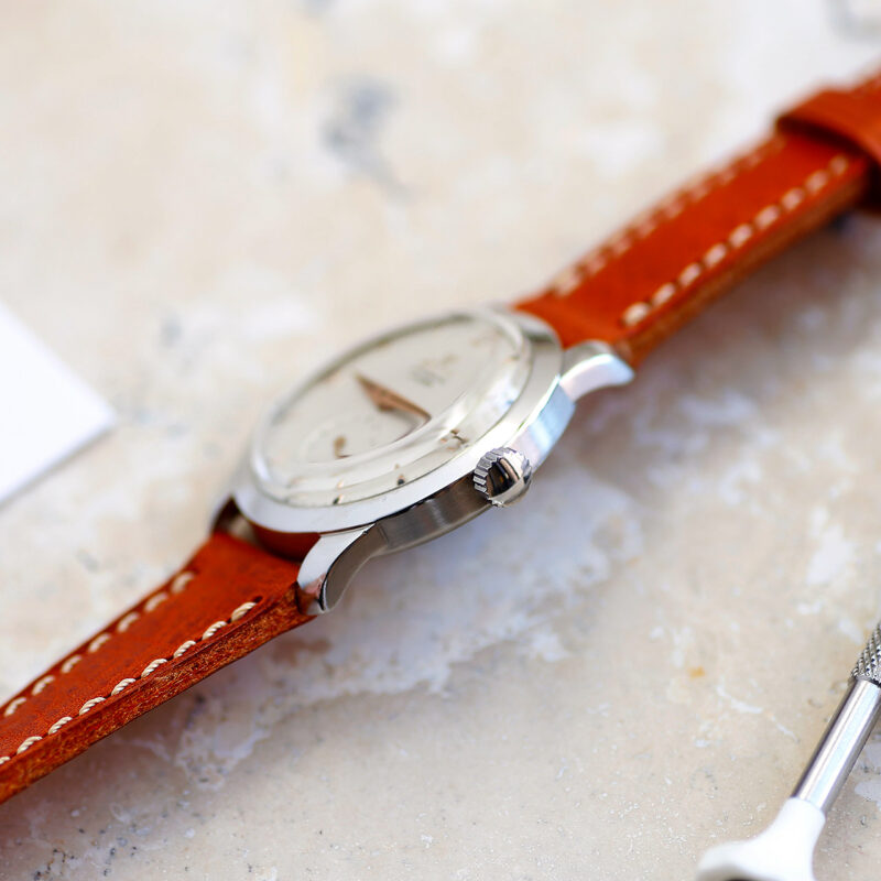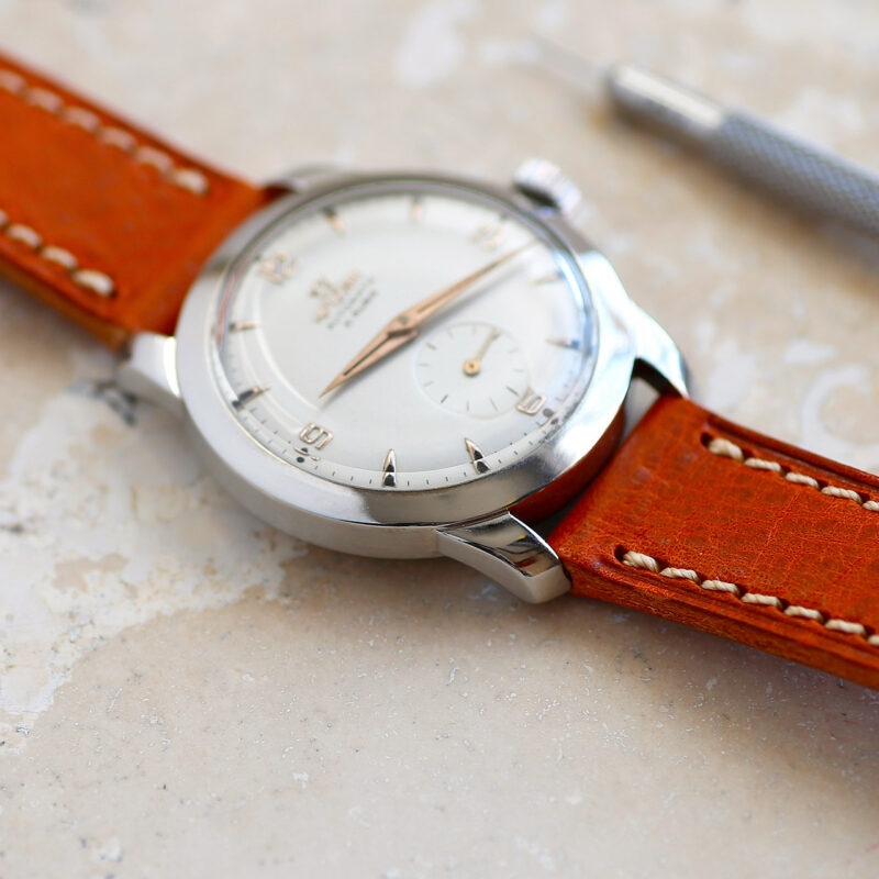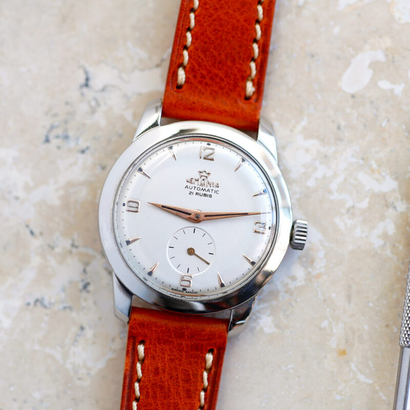 Presented with a new high-end stitched leather strap, this 1950s Lemania 288 Automatic has been lovingly restored by EmmyWatch, assuring you of both its quality and authenticity. Backed by EmmyWatch’s zero-headache warranty, this exquisite timepiece is not just a watch—it’s a piece of history that beckons to be worn and cherished for years to come. Dare to own a piece of horological heritage with this exceptional vintage wristwatch.