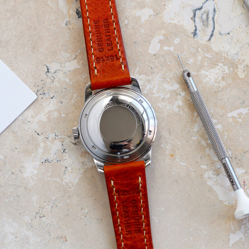 Under the hood, the fully overhauled Lemania 3600 movement shines brightly, featuring intricate details like a breguet overcoil and incabloc shock protection, a true testament to Lemania’s watchmaking prowess. Complementing its historical significance is a charming small second subdial, housed within a wearable 35mm case diameter and adorned with a new crystal.