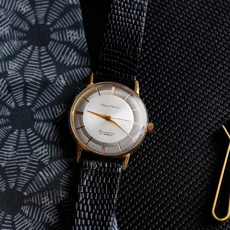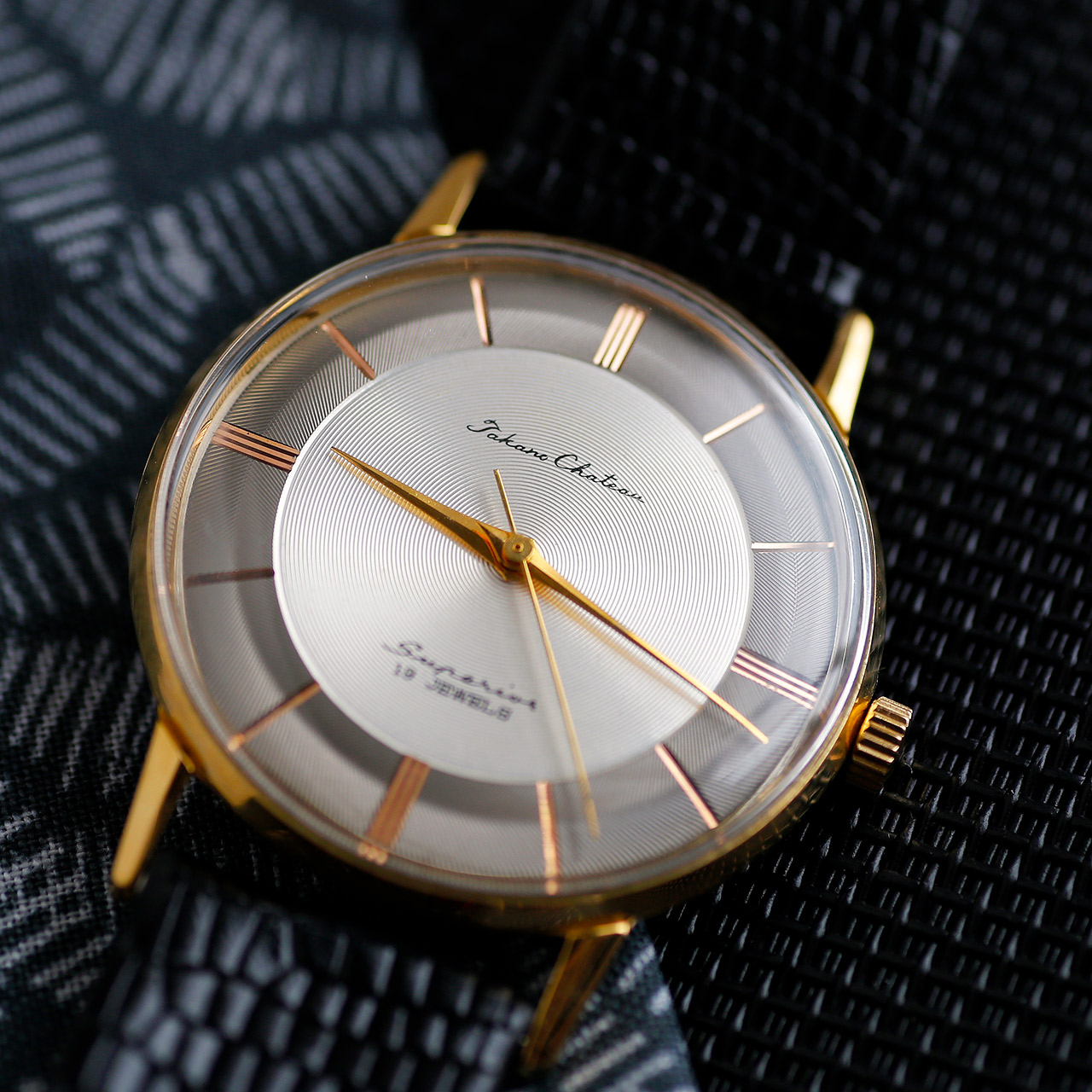 Introducing the 1959 Takano Chateau Superior Guilloché, a luxurious vintage wristwatch meticulously restored by EmmyWatch, renowned for their expertise in luxury vintage watch restorations. This elegant timepiece is a true gem, boasting a rich history as one of the top-of-the-line models from Takano, a distinguished Japanese brand recognized for its high-end craftsmanship during its brief existence from 1957 to 1961.