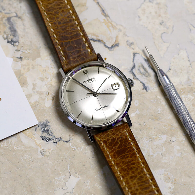 The all-stainless steel case has been restored to OEM finishing specifications and features a new Omega acrylic crystal and a new high-end stitched leather strap with an Omega buckle. The dial, case, movement, buckle, crystal are all signed Omega.