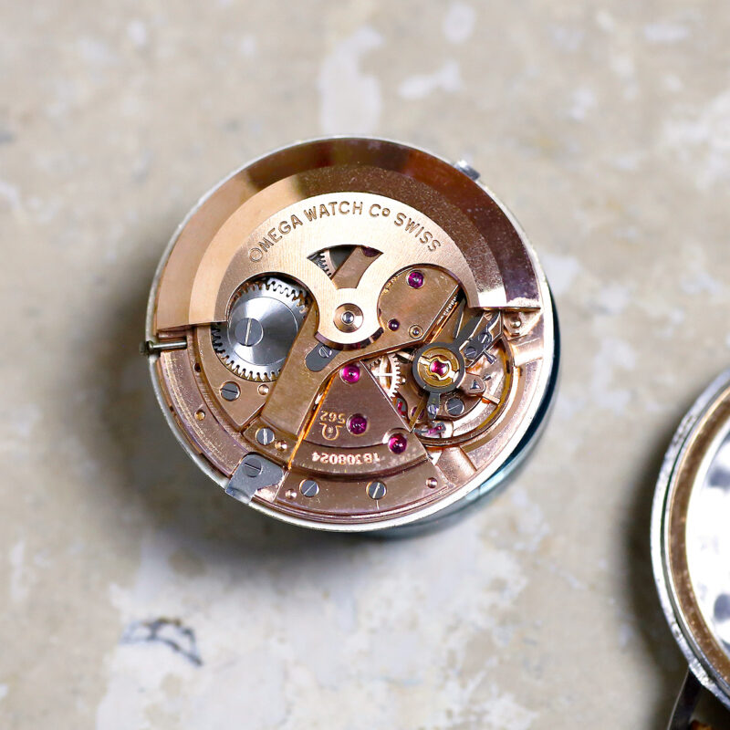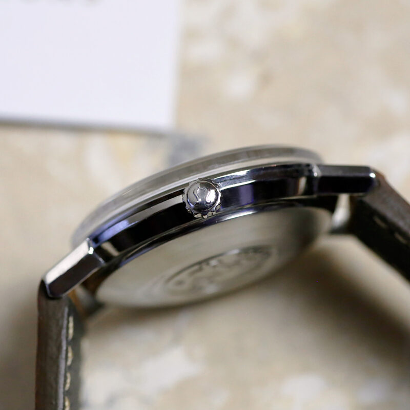 Powered by a fully overhauled Omega 562 Automatic movement that features a semi-quickset date. The watch boasts a 34mm diameter with a minimal bezel making it wear larger on the wrist, and is suitable for men or women with wrist sizes ranging from 6″ to 7.5″.