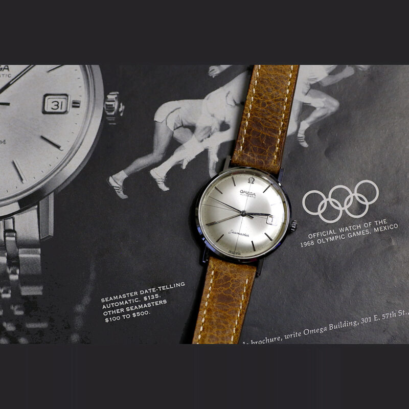 The 1960s Omega Seamasters, like this one, were the official watches of the 1968 Summer Olympics in Mexico. The original magazine print from Emily’s personal collection is shown in the pictures along with this watch.